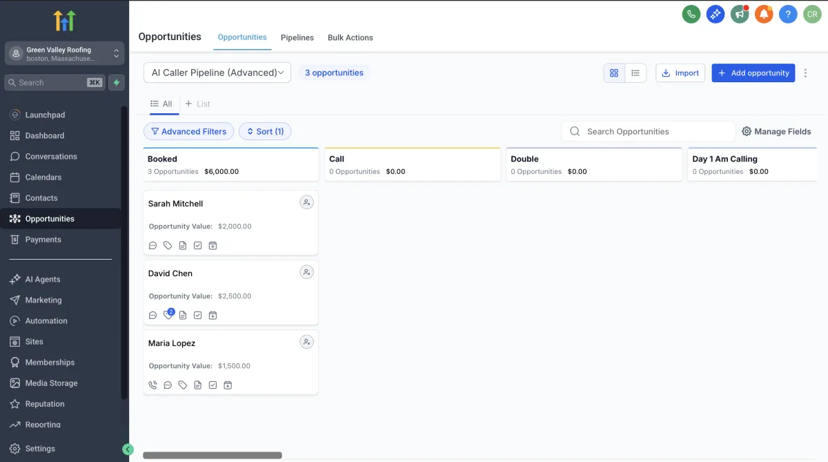 When a customer calls your business or submits a request, the system captures the lead immediately.